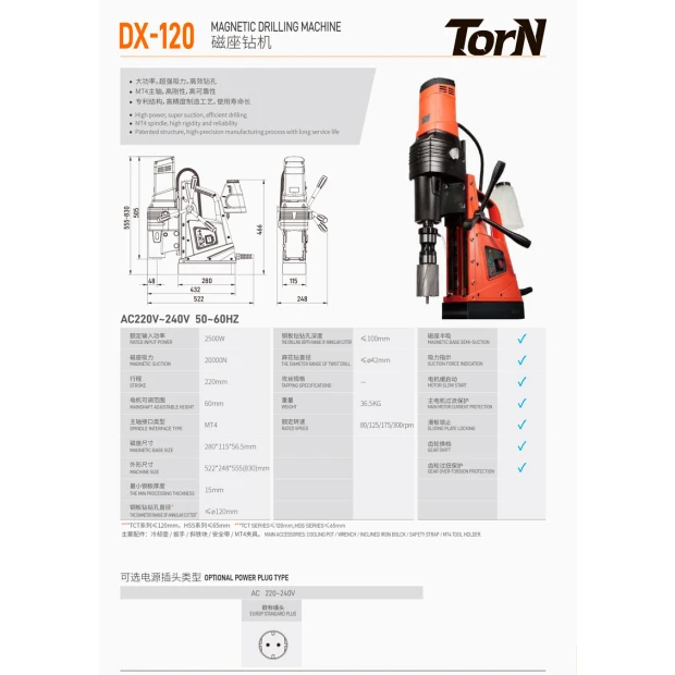 Если вам нужен мощный магнитный сверлильный станок с большим запасом ресурса, выбирайте DX-120 — надежный инструмент для серьезных задач.