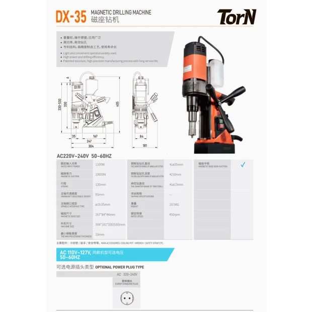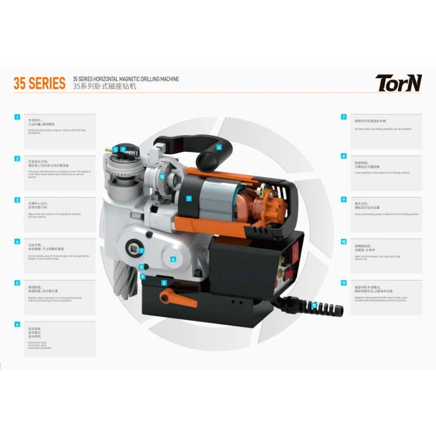 Если вам нужен компактный и мощный инструмент для сверления в металле, где не справляются ручные дрели и стационарные станки, магнитный сверлильный станок Torn DX-35 станет отличным решением.