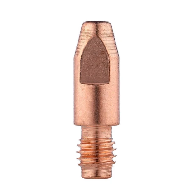 Стандартный сварочный наконечник с резьбой М8 для проволоки диаметром 1,0 мм. Подходит для горелок MIG MP 26/36/400/450/500. Выполнен из меди с добавлением хрома и циркония, которые повышают износостойкость и продлевают срок службы наконечника.
