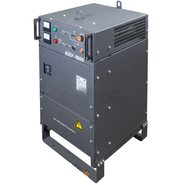 ВДУ‑1000 — мощный сварочный выпрямитель с принудительной вентиляцией и двумя типами жёстких внешних характеристик. Он применяется для комплектации автоматов сварки и наплавки под слоем флюса или в среде защитного газа, с использованием проволоки, прутка или электрода диаметром до 6 мм.